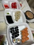 Время ожидания доставки курьера просто ошеломительно , доставили суши буквально за 25 минут , так еще и в подарок привезли сет суши маленький 32 шт , что тоже приятно Из минусов много сыра , или майонеза просто пересолен - теперь точно год на суши смотреть не смогу из за этого , подарочный сет был вкуснее Начинка очень мелкая , по факту ешь 1 сыр и рис , Но в целом не плохо за курьера отдельный респект