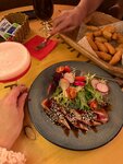 Перед поездкой заранее искали заведения для ужина в субботу, подкупила живая музыка, имейте ввиду вход платный на нее - 700 руб в зал, где поют. За столик на двоих депозит 5 тыс, посадка полная, при этом еду и напитки приносили очень быстро. Рибай пережарили, может фото не передает, но это не медиум. Обычно при подаче стейка в других местах официант просит разрезать мясо и проверить правильность прожарки, тут принесли и даже потом не спросили, хотя стоимость блюда немаленькая - 3 тыс. Тунец хороший, горячие сет закусок вкусный, жаль в меню нет отдельно креветок в панировке и сырных палочек. Отдельный восторг за коктейли, не думала, что в пивном ресторане большой выбор коктейлей, к тому же не классических и безо льда. Кавер группа начала петь в 23, хотя в афише было указано 22. Это важный момент, так как мы бы столик забронировали на более позднее время. В целом весело, атмосферно, даже вдвоем отдохнули хорошо, хотя в зале были в основном большие компании.