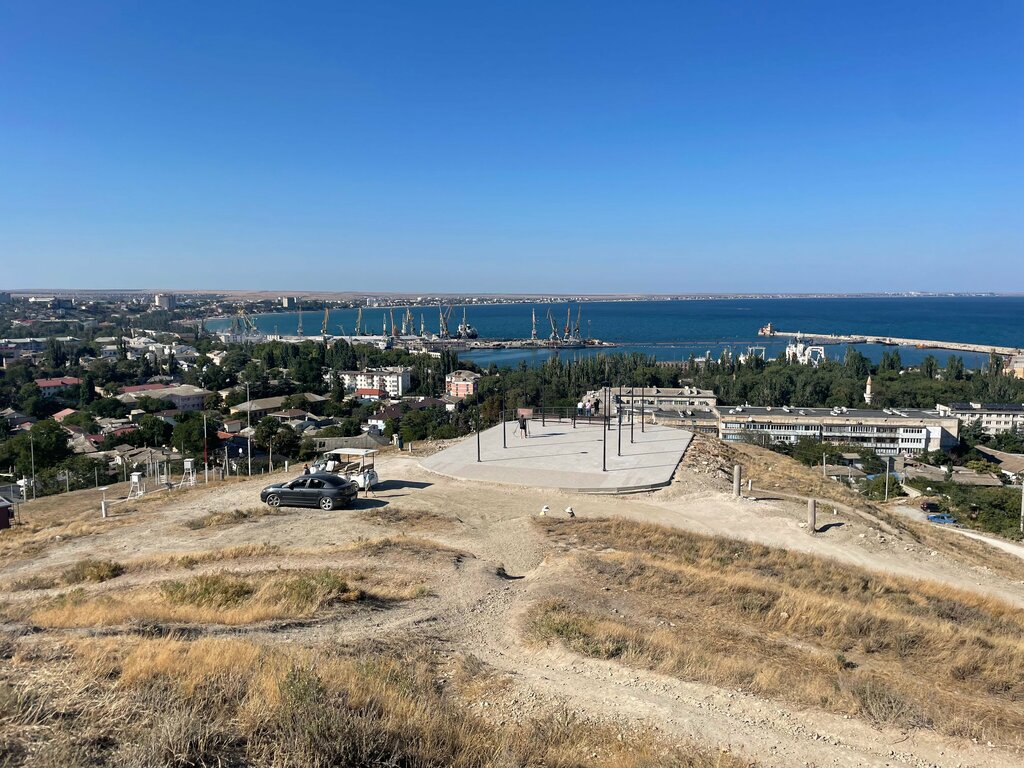 Оборудованная смотровая площадка расположена на вершине, с которой виден город, как на ладони. Здесь по кругу расположены скамейки, есть освещение, урны для мусора. Отсюда хорошо просматриваются Генуэзская крепость и храмы.