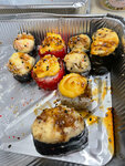 Вкусные роллы и том ям. Брала пиццу Маргарита. Для меня тесто было слишком дрожжевым, не доела…