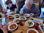 После осмотра Изборской Крепости и Словенских ключей зашли в Блинную, так как было время как раз обеда. Сначала сели на открытой веранде, но осы мешали, и мы с дочкой пересели внутрь. Еду заказываешь на кассе, потом по номеру заказа ее принесут к столику. Был будний день, мы ждали не очень долго. Меню не очень большое, но все было вкусно и по домашнему, цены не высокие. Внутри все красиво оформлено в русском стиле, есть печка , даже туалет интересно оформлен. Еще здесь мы купили мороженое.
