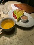 Вкусный мцвади из цыпленка, вкусный фисташковый чизкейк, овощи гриль- жирно, не вкусно, салат цезарь с курицей- вкусный, но курицы мне показалось маловато. Официант был молодой человек, не запомнила как зовут, очень вежливый, тактичный, приветливый, НО! Прошу заметить, на стоянке у вас написано 2 или 3 часа бесплатно, на чеке который выходит 30 минут, но для посетителей ресторана бесплатно, на выезде с нас шайтан-машина потребовала 200₽, хотя обещали по номеру квитанции сделать бесплатно 😁 Мы сидели далеко не 2 часа. Дозвониться после 22:00 проблематично. Учтите пожалуйста это. Оценку снижать не буду, но есть над чем поработать.