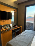 Чудесный отель! Мы провели в нём 4 ночи и готовы вернуться снова. Приятно удивил персонал – очень услужливые и участливые ребята, всегда приветливые, знают русский. При заселении нам сделали апгрейд номера, жили на 5 этаже. Номера правда маленькие, но нас это не смутило, квадратура была известна при бронировании. Современный ремонт, холодильник, чайник, наборы для чая и кофе, в ванной гели для душа, шампуни, наборы с ватными палочками и дисками. Каждый день все запасы восполнялись, очень качественно убирались. Завтраки вкусные, приятный кофе из кофемашинки, что редкость для Турции. Но кому нужно разнообразие на завтраках, наверное, не понравится, за 4 дня еда особо не менялась. Ну и естественно, местоположение просто невероятно удобное – до многих туристических точек легко добраться пешком. Из минусов: так себе шумоизоляция, по вечерам слышали что происходит в соседних номерах, около 6 утра просыпалась от звуков мечети, но под конец поездки привыкла)