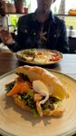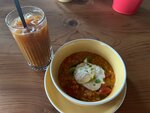 Часто гуляя видели это милое место и не решались зайти, так как были не сильно голодные и вот настал день. Интерьер восторг, очень мило, немного хауса и беспорядка, но как будто так и надо. По меню заказали круассан с ростбифом, том ям, сырники и чай фруктовый. Круассан на 4, так как я ела похожий в одном месте и ничего подобное пока не нашла, лучше вяленые томаты чем свежие, соус другой, но это чисто мой вкус. Том ям парень оценил, сказал хороший, сырники делают сами, воздушные, красивая подача, по меню твердая 4, но и это не ресторан. Место хорошее, точно если будем гулять, что то ещё попробуем, тем более что очень уютно и так и тянет зайти.