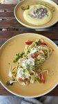 Спасибо добрым людям, за хорошие отзывы, иначе бы прошла мимо) Бульон с щедрой порцией курицы, вкусный тунец, вкусные вафли, открытая кухня приятная музыка, вежливый персонал, приличный туалет - всё прекрасно для путника утопленного солнцем)) Спасибо оранжерее за мой приятный пит-стоп)
