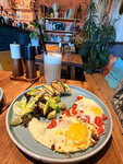 Красиво и вкусно! Брала овсянку с валянными томатами. Первый раз пробую такое сочетание,но не пожалела-вкусно) дизайн кафе стильный,нестандартный и очень атмосферный. Есть стеллаж с различными книгами,которые можно почитать или почитать в ожидании вашего заказа) персонал мне тоже понравился. Вообщем всё понравилось,вернусь ещё раз,чтобы продегустировать что-то новое)