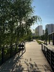 Замечательный парк. Все есть, детские площадки, спортивные площадки, стационарные туалеты, деревянные настила, лавочки и скамейки. Часто проходят различные мероприятия. Отличное место для занятия танцами или фитнесом. Есть качели возле пруда. Парк огорожен забором.