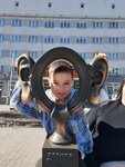 Забавная фотозона, но состояние ее уже весьма потрёпанно и наверно скоро упадёт имея такой наклон. Людей рядом всегда много. Почему-то статуя напротив не так известна как эта. Пофотографировались всей компанией. Уши потёрли)