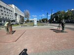 Я прямо целенаправленно шла с набережной от надписи "Счастье не за горами" к этому памятнику. Каково же было удивление, что он такой маленький) и фон гостиницы, на мой взгляд, является странным выбором локации установки памятника. Сам памятник мне понравился, интересная реализация.