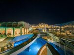 Отличный отель для семейного отдыха, особенно подойдет с детьми до 10 лет, так как имеются 8 горок, отдельные мини горки для маленьких детей и прибрежная песчаная зона до самых буйков (а это примерно 100-150 метров от берега) глубиной по колено взрослому, поэтому за детей не беспокоишься что уйдут на глубину. На территории располагается 5 ресторанов, основное отличие в них это по мясным блюдам (в одном представлена курица гриль, в другом рыба, в других говядина) и десертам. Еще есть один ресторан А ля карт, которым бесплатно можно воспользоваться 1 раз за отдых по предварительной записи, но в него мы не ходили, так как нас полностью устраивала еда в имеющихся 5-ти ресторанах, при том что некоторые блюда из одного ресторана свободно можно переносить в другой ресторан. Территория очень ухоженная и постоянно ее поддерживают в отличном состоянии. Из особенностей отель расположен на небольшом склоне, это нужно учитывать при выборе номера, потому что если брать в основном корпусе, то до пляжа идти примерно 3-4 мин со склона, а обратно идти придется вверх склона и пенсионерам будет тяжеловато, поэтому в таком случае лучше брать номера на первой береговой линии.