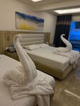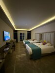 Шикарный отель!!! Отдыхали с 04.07 по 14.07.2025, три взрослых и ребенок 12 лет. Приехали в 12 часов, сразу одели браслеты, заселение в 14 часов, не было свободных номеров. Зато стандарт повысили на номер фэмэли, две комнаты, одна двуспальная кровать и две полуторных, одна комната с видом на море. Номер 1234)). При заселении подарили три литровых бутылки кола, фанта и спрайт. Отель вмещает 2500 человек, но территория настолько большая , что людей практически не чувствуешь. Большое количество бассейнов, баров и ресторанов. Всегда есть свободные шезлонги. Особенно хочу отметить работу персонала, очень внимательные, чуткие, всегда готовы принести напитки и воду. В ресторане напитки приносят официанты, любое количество раз. Очень большая и сильная команда аниматоров, на русском говорят хорошо. Всегда есть чем заняться, я ходил на утреннюю растяжку и конечно же на волейбол. Волейбол на пляже, играли после обеда, очень веселые и напряженные игры. С удовольствием приеду еще раз в этот отель!!!