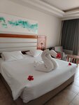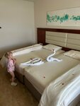 Отель отличный, еда: мясо говядина, курица, морепродукты, территория огромная, персонал ненавязчивый, уборка каждый день, особенно большое спасибо Ибрагиму, уборка супер, каждый день оставляет воду, меняет полотенца, чай, кофе по надобности, делает разные фигурки из полотенец , очень приятно. Море есть заход с пирса, и есть плавный заход в море с берега очень комфортно с детьми. Спасибо за проведённый отпуск!