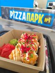 Пицца вкусная, Большая, горячая. Роллы XXL замечательно. Заказывали к определённому времени, всё отлично. В Яндексе не всё меню показывают и почему то цена разная, заказал через приложение Пицца Парк 1. Дешевле выходит.