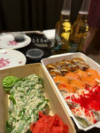 Спасибо за вкусный ужин. Заказали доставку на дом через приложение, оператор подтвердил заказ, уточнил все детали, общался вежливо и не тараторил (как делают в многих заведениях). Ещё хочу выделить оповещения о статусе заказа, который присылают в wats app, очень удобно. Доставка быстрая, даже в воскресенье,через 40-45мин уже кушали вкусные роллы