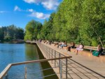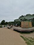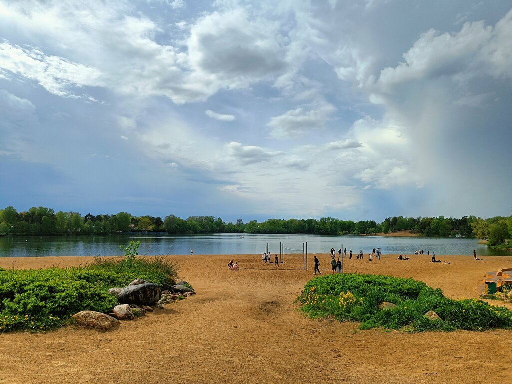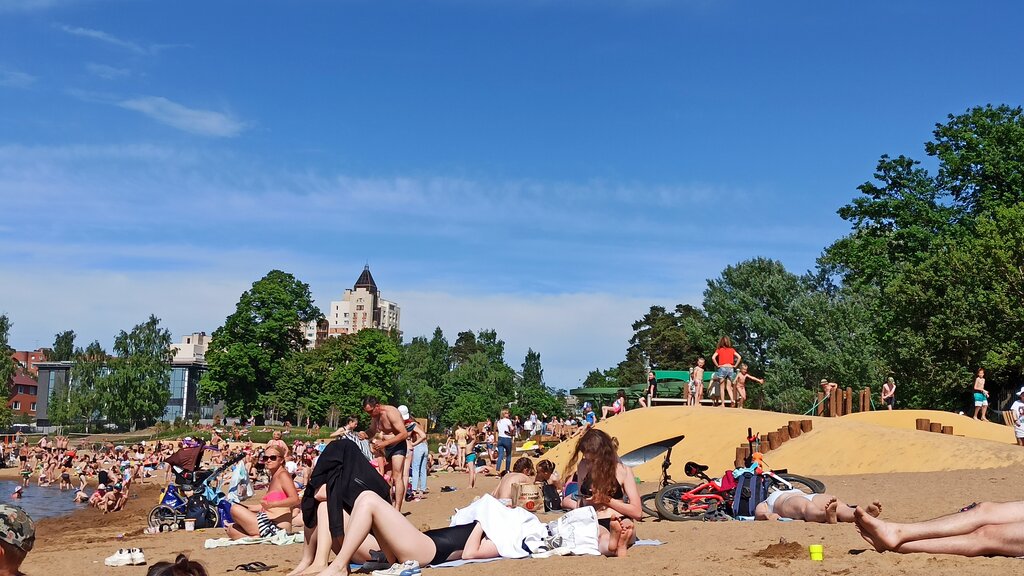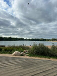 Побывали с мужем на пляже возле Озерков. Всего несколько минут от метро, и мы уже гуляли по золотистому песку. Несмотря на то, что вода уже заметно похолодала, на пляже было многолюдно: семьи с детьми, парочки, компании друзей — все наслаждались тёплым выходным днём. Особое восхищение вызвали благоустроенные дорожки вдоль берега — ровные, чистые, идеальные для неспешной прогулки. Порадовала продуманная инфраструктура: аккуратные деревянные шезлонги и скамейки, кабинки для переодевания, игровые зоны с горками и качелями, велопарковки. Также есть возможность взять напрокат лодку, катамаран или сапборд. Особенно впечатлил огромный веревочный парк, где дети с восторгом лазили по канатным конструкциям, пока их родители наслаждались шашлыками в специальных мангальных зонах неподалёку. В целом же это прекрасное место, чтобы спокойно прогуляться вдоль озера, понаблюдать за птицами, которых тут множество, и полюбоваться живописными видами.