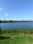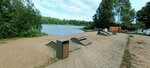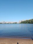 Маленький песчаный пляжик с выходом к воде, но вода цветёт и тем более на противоположном берегу кладбище поэтому купание тут на любителя. Есть две переодевалки, мусорные баки и станция спасателей. На лежаках непонятно как лежать потому что они в форме горки 🤔🤷🏼‍♀️ Ну и добираться сюда пешком очень далеко от любого общественного транспорта, но за счёт этого людей почти нет даже в жаркий день.