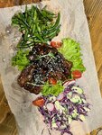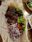 Очень вкусный том-ям с морепродуктами, только тут он поямо "правильный", ещё попробовал лангустины вообще отвал башки. В другой раз попробовал ребрышки в вишнёвом соусе BBQ, еле остановился, чтобы не слопать доску на которой их подали.