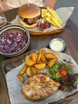 Хорошее современное кафе, вкусная еда, сырные палочки просто огонь. Можно попробовать что-то новенькое типа Поке боул, буритто..., к можно и классику. Мужчины заказали сковородку с морепродуктами. Муж брал крафтовое пиво, вкусное но дороговато.