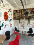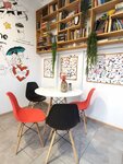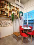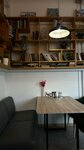 Уютное и просторное кафе. Брали кофе и выпечку с собой — все вкусно. Пока ожидали, изучили книги на стеллажах — буквально на любой вкус. Как я узнала, в кафе проводится что-то вроде книжного клуба — это здорово.