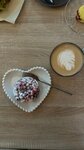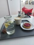 Очень вдохновляющая кофейня, кофе вкусный и безумно вкусный чизкейк! Очень рекомендую взять именно его к кофе. Десерт Шу показался не интересным ( но может это дело вкуса☺️