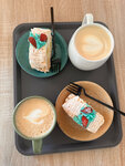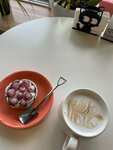 Очень приятное место, красиво, чисто и стильно! Здорово, что много элементов для деток (понравилась стена с пластилином, детский стульчик). Очень вкусные тортики 😍 Кофе показался горьковатым (брали капучино)