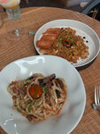 В целом понравилось, интерьер приятный, сервис без замечаний, зеленый салат топ 10/10, суп лакса понравился, но еще раз вряд ли закажу, осьминог хорошо приготовлен, мягкий, не резиновый, но не лучший в жизни, бургер - ничего особенного. Лучше, чем в бургер Кинге, но рекомендовать скорее не стану. Как минимум раз еще вернемся попробовать остальные позиции и завтраки.