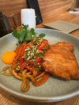 Зашли совершенно случайно, а побывали в ресторане уровня Мешлен. Я ела утку с гречневой лапшой и каким-то соусом и она таяла во рту, такого я даже во Франции не ела. Цены не кусаются, но если вы хотите плотно поесть, это не сюда, там едой нужно насыщаться и по этому порции меньше обычных.4 звезды ставлю за напиток, брала манго-маракуйя, половина содержимого-лёд, я знаю, что так «как бы должно быть», но всё же лимонад был не очень насыщенный. Родители брали суп и какое-то ассорти из рыбы, честно не помню, но они в восторге. Ещё + за «комплименты от шеф повара» принесли 3 шарика из измельченного палтуса на хрустящем нори и даже при том, что я не особо люблю рыбу, это было очень вкусно. Родители отметили, что алкоголь принесли «на донышке» , но после всё же отметили на сколько он хорош и что вообще-то так и должно быть. Ещё им принесли как «комплимент» две малюсенькие рюмочки с каким-то алкоголем, цитирую: «Очень интересный вкус, насыщенный я бы даже ещё попросил» вообщем зашел. За комплименты всё же поставлю 5 звёзд.