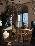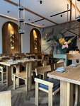 Стильный интерьер, много теплого дерева. Салфетки, меню, подставки под приборы - все в общей стилистике. Вкусно, приду ещё пробовать другие блюда. Завтрак понравился))) Официанты вежливые, музыка приятная, в целом классное место