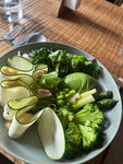 Для эстетов это рай. Очень красивый интерьер. Обслуживание вежливое, культурное, относились с заботой и пониманием) Заказала на пробу маринованный арбуз. Он оказался на вкус сладко острым, необычно и вкусно. А так же зелёный салат и ….. Зелёный салат это просто бомба. Точно вернусь сюда из-за него😅 прекрасное сочетание. Вкусовые сосочки пищали от радости😁😁