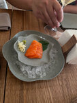 Персонал очень вежливый, пальто можно оставить в гардеробе взамен на номерок. Атмосфера приятная, музыка спокойная, подходящая по тематике к месту. В каждом ресторане азиатской кухни первым делом пробую сашими. Подача была правильная, рыба свежая, текстурная. Время ожидания длилось недолго, нам сразу предложили воду, затем принесли заказанные напитки.