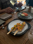 Очень стильное место! Интерьер, посуда, подача блюд, декор, форма официантов - все идеально сочетается. Заказывали зеленый салат, цукемоно, рамен с уткой, шашлычки из креветок, утки и брокколи. Очень вкусно! Шикарные безалкогольные коктейли! Очень рекомендую!