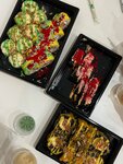 Роллы понравились, вкусные и разнообразные. Порции прям большие. Вспомнили про фото когда уже половину съели 😄 Доставка в будний день оказалась очень быстрой. Кто- то в отзывах писал, что не докладывают имбирь/ соусы, но у ребят в приложении все указано, что соусы идут только к сетам, просто нужно все просматривать перед заказом (заказали доп. соусы). Использовали промокод в день рождения, скидку применили, проблем не было.