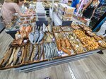 Огроменный выбор рыбов! Кальмары, креветки, раки, рыба вяленая, рыба холодного копчения, рыба горячего копчения, миллион рыбных снеков по типу всякой соломки и икры. Цены приемлемые, персонал посоветует что и как. Очень понравились осьминоги , жареная мойва, форель холодного и горячего копчения. Зайду обязательно еще и потом дополню отзыв.
