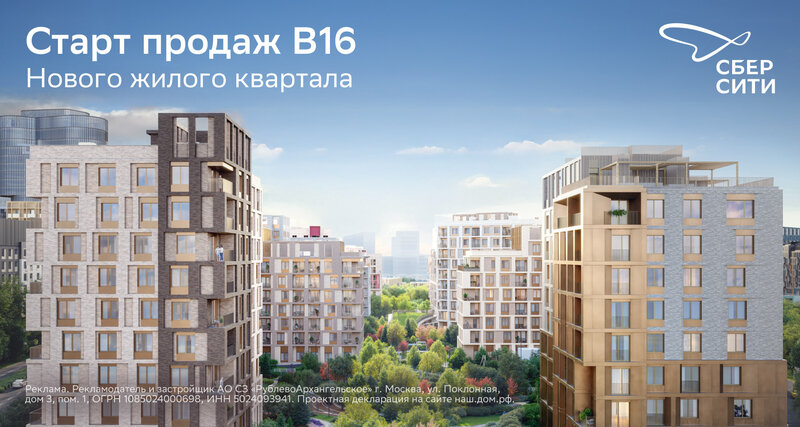 Старт продаж нового квартала в СберСити с двором‑парком (2га).