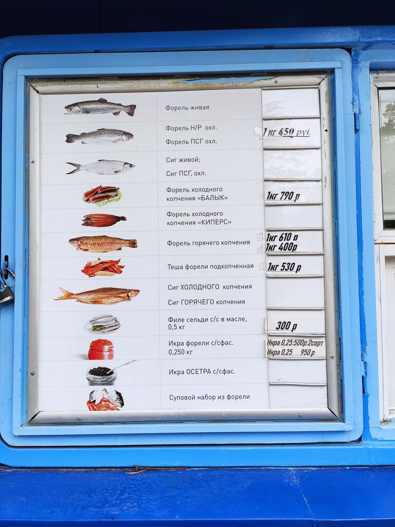 Приехала в 10 утра среды, форелька мелкая (две на 1800 гр получилось), не вакуумка. Свежак однозначно! Копченая форелька только с головной частью,хвосты наверно разобрали)) но ! Это нужно брать однозначно, очень слабосоленая, сочная,не кислит и нет неприятностей в желудке. Инет там слабый,карта может не работать,как и перевод на карту. Поэтому лучше наличка мелкая. Сдачи тоже нет. Продавец, ну как продавец.