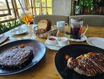Зашли по рекомендации. Что сказать. Интересный дизайн, вежливый персонал который на зубок знает меню и особенности блюд. Быстрая подача и вкусная еда. Мясо приготовленно правильно согласно пожеланию. Пол звездочки снял бы только из за цен на стейки)