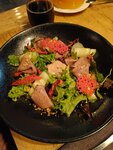 Мясо было отличное!!! Заказывали рибай, тартар, шею, баранью лопатку и утку. Понравились салаты, особенно с вяленой говядиной. Не впечатлил коктейль Фейхоа тай. Фруктовые чаи насыщенные. Персонал был, мягко говоря, неучтив. Весь вечер не покидало ощущение, что мы пришли к официанту домой незванными гостями и отвлекаем её от более важных дел, хотя посадка в зале была минимальная. Единственным приветливым работником был шеф-повар, которого случайно встретили при выходе. Только благодаря ему пять звёзд.