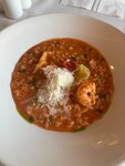 Густой средиземноморский суп из морепродуктов. В его вкусе гармонично сочетаются нежность розовых томатов и пикантность рыбного бульона, а креветки, кальмар и осьминог делают блюдо сытным. Орегано и базилик придают ему средиземноморский колорит