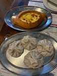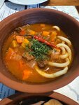 Место атмосферное в духе грузинских заведений. Есть свои плюсы и минусы. Из минусов: - глиняная посуда со сколами; - в хинкалях фарш невнятного качества... Даже не знаю как его описать... Что с бараниной, что с говядиной вкус одинаковый 🤣 без специй, пустой.... Понятно что это сетевое заведение и технологичка одна для всех, но возможно технологу стоит попробовать свое творение; - нас было 7 человек (два разных счета и два соседних стола), все заказали разные хинкали, но принесли нам их в трёх подносах в перемешку и тут конечно начался сбой системы, так как каждый уже забыл какие он заказал и пришлось передавать эти подносы со стола на стол ища свои хинкали.... Да у них типа разной формы хвостики, но сорри почему бы не положить персонально каждому гостю хинкали, мы не заказывали дюжину и тд. А теперь по плюсам: - лагман отличный, баланс специй на уровне, лапша в нём просто шикарна, она толстенькая но воздушная. - куриный суп (не помню как называется) очень зашёл детям, доели до самого дна тарелки все 😊 - хачапури очень вкусный. Тесто великолепное, сыр подобран отлично; - ребята и девчата официанты умнички, видно что стараются, есть чему учится, но простим им это в силу возраста. В общем место хорошее, но есть над чем работать технологам и руководству, а ребята пекари, официанты и повара молодцы!