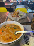 Очень нравится там находиться, приятная музыка. Блюда большие и вкусные. Уходим всегда сытые. Очень вкусный десерт с бананом. В доступности большой выбор соусов. Рекомендую к посещению.