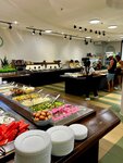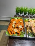 Много раз пользовались ! И это реальная оценка. По сути для нас альтернативы на побережье Ноаого Света не было! Широкий выбор блюд -рыбные, мясные, овощи и гарниры. Все приготовлено на хорошем уровне. Аккуратно, ничего не перетушено. Большой выбор салатов . Система простая, сам набираешь салаты и горячее по весу . Цена за 100г 95 руб. Но туда входят например котлеты куриные и пр. Рыба и порционные блюда отдельно. Из рыбы Форель. Скумбрия, треска ! До кухни ресторона не дотягивает может ассортимент, а по качеству выше чем во многих ресторанах на побережье. Цена в три раза ниже это точно. Проверено. На кассе официантки работают быстро и аккуратно. Очень большой поток а очередей практически нет. Конечно в час Пик надо кого-то кидать в зал на помощь. Большое разнообразие сладкого стола, но это не мой формат чтобы оценить, есть блины, сырники. Запеканка, яйца для завтрака. По совокупности рекомендую! Кстати не ращу не было изжоги что говорит само за себя . Едят семьи с детьми. Видел как мамаша пюре давала малышу явно до года! Это конечно удивило, но вероятно такой номер у них проходил уже. Столовая только открылась . Возможно это одна из причин хорошего и качественного обслуживания.