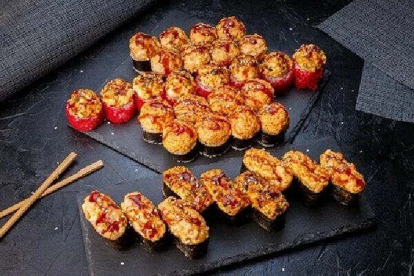 Заказывали здесь суши первый раз. Очень вкусно, креативный подход к составу сетов. Запеченные роллы очень пряные и нежные! Очень порадовало время ожидания. Всем рекомендую!