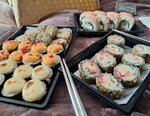 Заказывали через сбермаркет. Привезли сильно позже обещанного срока, но за это оценку не снижаю. Низкая оценка за качество! Ещё ни разу не видели таких ролов ... Один рис. Внутри во всех ролах сета был только сыр, да его очень мало. В одном из видов был намёк на крабовые палочки, но их вкуса не чувствовалось совсем. Рыба, которая лежала на ролах сверху была на столько тонкая, что аж просвечивалась. Как будто, её намазали. Фактически, это комочки риса в разных соусах! Очень много кунжута, который перебивать все остальные вкусы! Не рекомендую и сам больше там не закажу. Не понятно, на что расчет у ресторана. При таких ценах, если намного более достойные варианты!