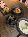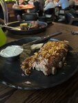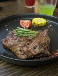 +красивый интерьер +бесплатная вода +мне было вкусно +недорого +комплимент от заведения в честь дня рождения -много посетителей (что, впрочем, только доказывает, что место хорошее, и подтверждает выгодность посещения) -шумно, а также громкая музыка Я брала себе салат с помидорами и страчателлой, как поняла, в салате еще был песто и бальзамический соус Очень вкусно, нежненький сыр, сочные помидорки, в целом что хотела, то и получила, фотку салатика прикреплю. Также мне принесли стейк из альтернативного отруба, взяла топ блейд. Он такой, на пожевать жировую прослойку, стейк брала с пониманием того, что мне предстоит. Мясо вкусное, с дымком. Очень боялась, что мне принесут пережаренный, так как в меню написали, что альтернативные отруба готовят до прожарки medium well, и официант подтвердил эту информацию. Мне повезло, стейк приготовили примерно до medium - medium rare. Также, как я поняла, у них дожаривают стейки, если не понравится прожарка, поэтому официант просил сделать первый разрез при нем. Интересная практика, не знаю как к этому относиться, вроде и здорово, удобно, когда заведение готово исправить что-то, но, с другой стороны, это несколько странно. К мясу идет соус на выбор, я взяла себе брусничный с розмарином. В общем, это сочетание не самое лучшее, так как с соусом, конечно, неплохо, вполне себе, но в таком случае нет главного — вкуса мяса. А зачем еще есть стейк, если не для вкуса мяса) но все отлично, соус шел отдельно, так что я просто съела свой топ блейд без него. Кстати лимонад с маракуйей и, кажется, малиной очень хорош. Как итог, я точно вернусь Попробую найти свое сочетание, где соус будет подчеркивать, а не забивать вкус