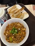 Еда реально очень вкусная. Пробовала Тяхан с курицей и Гедза, очень понравилось. Удобно ещё то, что у заведения есть свои столики для посетителей