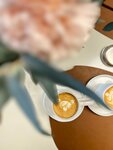 Ну, переходим к самому главному: - кофе по терпкости, температуре, послевкусию – очень даже хорош. Если попросите сделать на ристретто, то почувствуете более мягкий и покладистый вкус кофейка. На большом капуче сделали мимимишку. И тут я влюбилась в бариста 😀 Возможно, было бы неплохо экспериментировать с обжаркой и предлагать гостям несколько видов зерен. Вдруг, вас потянет на спэшл 😅 – сервис: ну, любезны, ну быстры, ну душки. Время ожидания 5-10 минут. Заказ делаете сами, затем его приносят за столик. Ещё предлагают завести бонусную карту. Можно набрать водички. Так что от обезвоживания никто не пострадает) - десерты: свежее, тающее во рту, сытное. Делают сами. Пробовала канноли. Боже, это же настоящее хрустящее облачко. Там их было два вида и оба чертовски хороши! За открытой кухней можно наблюдать бесконечно! – обстановка: по кайфу. Отдельное уважение за свежие цветы на столики и приятный глазу светлый интерьер. Можно прийти и поболтать, и поработать, и просто поглазеть на улицу рядом с панорамными окнами. Кофейня создана для классных фотографий – настолько тут все хорошо по свету и сочетанию цветов)