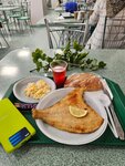 Если учесть, что это заведение при монастыре - хорошее место. Внешне - обычная столовая, чисто, мебель без повреждений, все аккуратно. При входе есть целый ряд раковин, а сбоку - большие отделанные туалеты. Мы были 8 сентября. Скажу прямо, выбор блюд... труден, даже для всеядного меня. А если вы не любите рыбу - скорее всего, выбора не будет. Смотрите сами: салат с ананасом и морковь по корейски. Суп с фасолью. Котлеты из рыбы, котлеты из кальмара, плов постный с грибами. Основные ингредиенты блюд - рыба и рис. Есть десерты из постных сливок и тертого бисквита. Чай пакетированный (вода из тена без ограничений) или сразу чайник. Раздача движется медленно, т.к. 1 человек и накладывает, и подогревает (еда в котлах успевает остыть, подогрева самой линии раздачи, видимо, нет). Суп был вкусный, десерт на 4 балла, остальное средне. Посуда и приборы одноразовые пластиковые. Не согласен с предыдущими комментаторами, ругавшими пластик. В таких местах я не рискнул бы пользоваться обычными приборами: сами понимаете, здесь люди бывают с самыми разными проблемами. В остальном все хорошо. Обед за двоих с десертом (он самый дорогой) 890 рублей в сумме. Да, еще один момент: наверху есть палатки с едой, у которых есть перерыв. Учитывайте это при посещении трапезной, в перерыв потенциальные посетители палаток придут сюда.