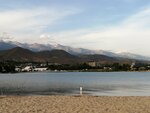 Классный пляж, протяженностью с километр, на некоторых участках песок прям очень мягкий и чистый, очень здорово ходить и смотреть потрясающие виды гор и озера. Достаточно большая площадь озера у пляжа с совсем небольшой глубиной, купаться и играть ребятишкам самое оно. Дорога на пляж идет через парк отдыха с красивыми мостами и беседками.