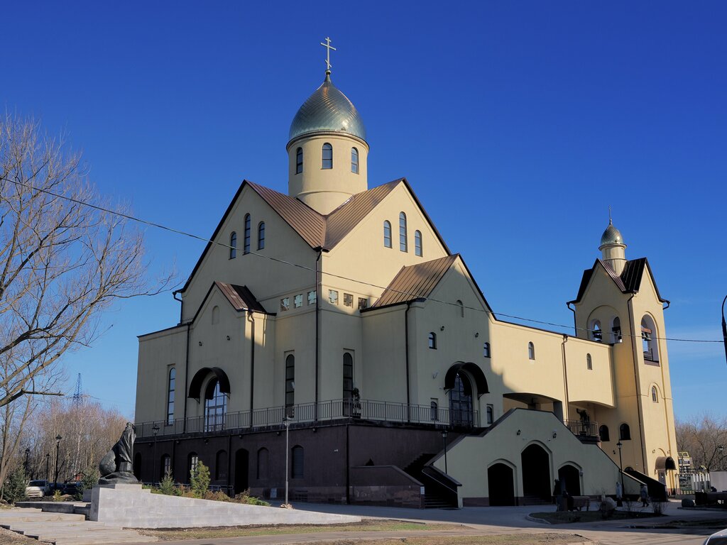 Храм новый большой ,двухуровневый, просторный, светлый , рядом находиться потрясающая скульптура " святой Сергий и медведь" ,по мотивам жития святого Сергия, скульптура настолько реалистичная ,что невольно возникает вопрос ,какой нужно обладать Любовью Божию,что такое грозное и хищное животное как медведь покорилось Святому. Если будете рядом ,зайдите обязательно посмотрите.