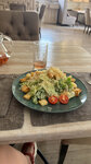 Понравилось всё) вкусно, красиво, быстро. На обратном пути приедем - хотим попробовать шашлыки👍 Детям понравились спагетти классические и компот😋ещё вкусный бургер и салат цезарь- порция кстати ооогромная)) есть фотка только салата